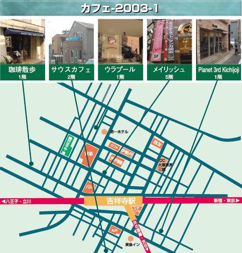 ●自家焙煎 珈琲散歩 オープン2003/3 ●サウスカフェ ●ullapool ウラプール閉店。 ●カフェメイリッシュ吉祥寺店 ●Planet 3rd kichijoji 3/6OPEN |