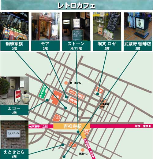 ■■開店15年〜30年以上の老舗喫茶■■ ●モア ゆったりとジャズが流れる店内は古くからのファンが多い。夜はやはりお酒ですね。 ●ストーン 8〜24:00 土日11〜24:00 駅の近くすぐのところにあり、古く30年もがんばっています。ドリンク520円から。本当の昔にもどれるかも。 ●喫茶 ロゼ 11〜19:00 ドリンク350円からお食事やセーキセットがお得です。初めて行く人はちょっと驚くかも。ドリップコーヒーでのびりできる。新聞・雑誌が有り。 ●武蔵野珈琲店 11〜23:00 コーヒー550円から。自家製のケーキもお勧め。井の頭公園に行く途中にあり、あまり目だだない感じでもあるが、一度いくと、くせになるかもしれません。コーヒー通には、絶対のお勧め。 ●エコー 古く建物は現代風ですが、この場所で40年以上にもなるという。古くからの常連が多い。知った人もいるかも。コーヒー400円から。 ●えとせとら 木を中心にしたイメージで、まだ、吉祥寺らしい古い感じでありふれている感じです。時間帯がながいランチもいいね。 |