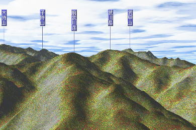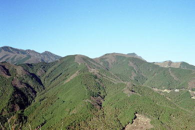 山頂から武甲山方面の展望。表記は左から「大持山」「子持山」「前武川岳」「武川岳」「武甲山」。
