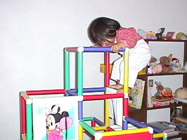 ディズニーのジャングルジムで遊ぶ図。(23,02,98)