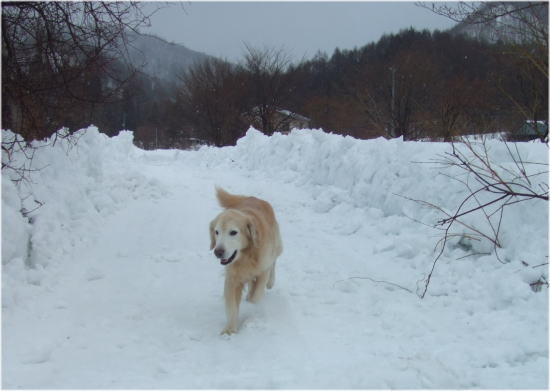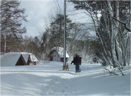 そして僕は食後の腹ごなし。 。。。って、実は僕だけまだご飯を食べてないんだよね。 遊ぶ前にご飯は禁物だからって、 遊んだ後にご飯にすることになったんだ。 ←そして、穴を掘る僕だよ。 ここはペンションの横から裏手に続く道。 新雪が沢山でフカフカで楽しいんだ。 S子はペンションで借りたスノーシューというのを 初体験して楽しそうだったよ。 |