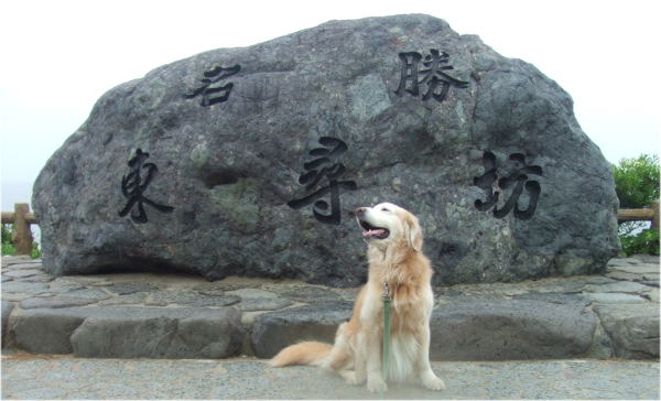 そして、また石碑の方の道を戻る僕達。 お店の人に「同じ道を戻れ」って言われたからね、忠実に守っちゃったんだよ、だって僕、忠犬だも〜ん♪ いや、本当は観光客がウロウロしているお店のある道を犬連れで通るのが面倒だったというのが真相なんですけどね。(S子) この道からの眺めは東尋坊とはまた違った魅力があるよ。 向こうの海岸線がとても綺麗に見渡せるしね。 |