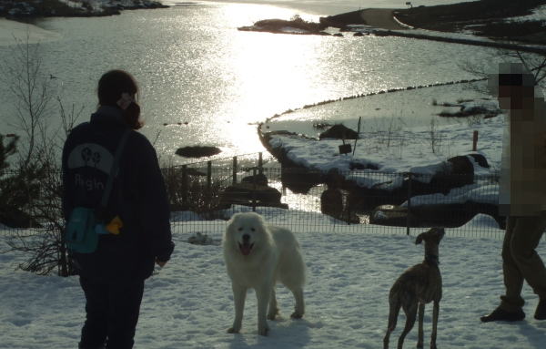 標識を曲がると、この通り森のドッグランだった。 雪のない時期は、ここがドッグランと芝生広場と第2駐車場になっているらしい。 今は一面雪野原。 だだっ広いせいか、雪があんまり積もってなくて、その上、野原を吹きすぎる風がすんごく冷たかったので、ロビン家はサッサと撤退。 結局この野原もいいんだけど、ここに来るまでの雪道の方を堪能しちゃったんだよね。 こうしてお散歩していたからあっという間に午前中が終わってしまい、チェックアウトの11時が目前になってしまったよ。 本当はチェックアウト前に温泉に行こうと思っていた子守はあきらめて、先にチェックアウト。 その代わりチェックアウト後にS子一人でのんびり温泉に行ってみたら、貸しきり状態ですんごく贅沢だったと喜んでいたよ。 その間、S夫と僕は暖房した車の中で休憩。 S子が戻ったら帰宅だね〜、って話していたんだ。。。 |