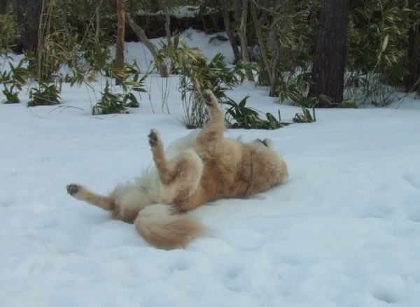 うひょ、ひょ〜! やっぱり朝の雪は冷たくていいねえー。 ゴロスリ冥利につきますわ。 |