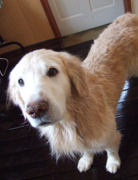 僕はレトリバーだからね。 ちゃんとボールを拾って来るんだよ。 。。。でもさ、 良く考えるとレトリバーで使役犬でしょ? 狩猟に連れて行って、打ち落とした鳥を拾ってこさせるための犬でしょ? 。。。じゃあ、本物の仕事をしているゴールデンも、僕みたく獲物を拾う前にゴロスリしちゃうのかな?! うっわー、血まみれの鳥とかにゴロスリしちゃったら、ゴールデンの身体が血まみれじゃん?! それってさりげなく猟奇的じゃない? ハンニバルが獲物を咥えて戻って来た。。。とかって感じ? 目とか行っちゃってそうで怖いじゃん〜!! (ロビン、何想像してんのよ自分で。S子) |