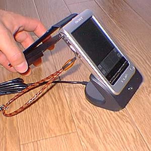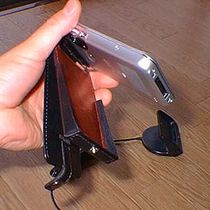 付属のカバーにホックを取り付けた革ベルトを縫いつけます。